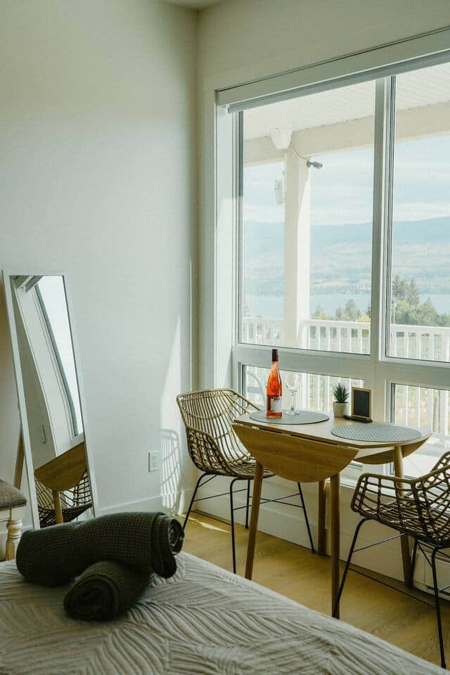 Welcome to our beautiful, bright, and newly designed retreat among the vineyards of Beaumont Family Estate Winery. Conveniently located just off of Boucherie Road in the Lakeview Heights neighbourhood of West Kelowna, enjoy the Okanagan lifestyle at its fullest with wineries, dining, hiking, and lake activities just steps away from where you'll lay your head. The Vinestay is a secluded getaway by Beaumont Family Estate Winery. Newly renovated, this modern suite includes a private entrance, one bedroom with a king bed, a living area with a 2-seat bistro set, a television, and a coffee and wine station complete with glassware and a coffee machine. Free parking is available in the large on-site parking lot. Complete with patio seating for the hot Okanagan summer, you'll enjoy staying at this relaxing vineyard property in close proximity to numerous wineries and dining options along the Westside Wine Trail.